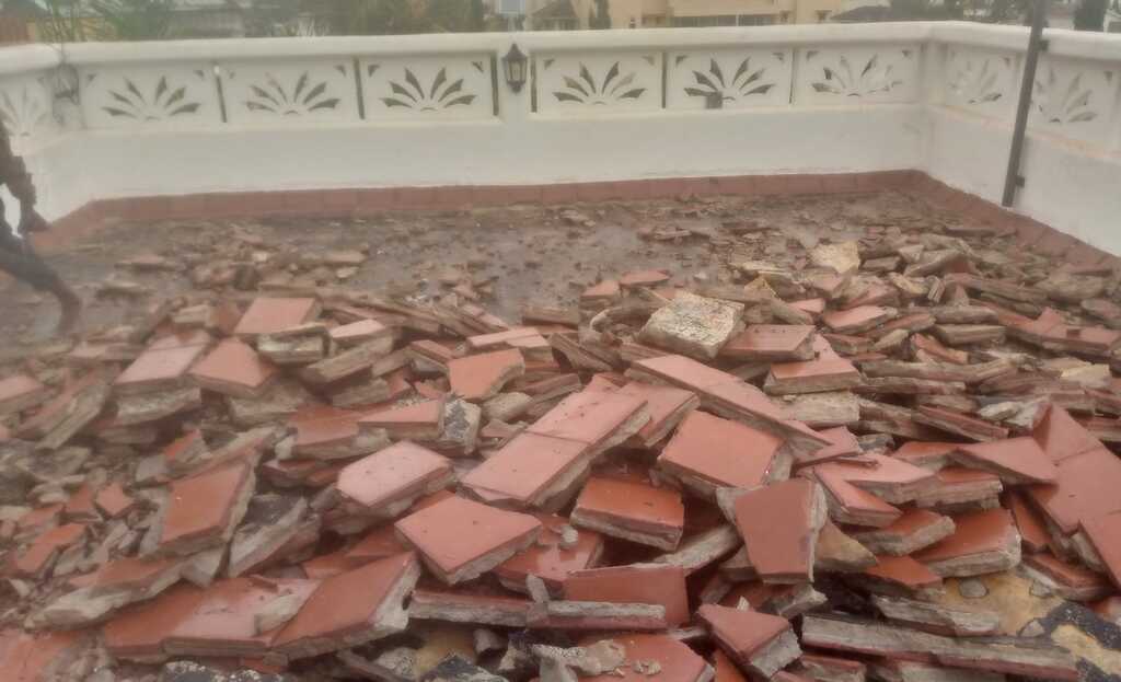 🔹 Removal of Existing Cement Tiles – Removed the tiles to expose the casted concrete substrate.